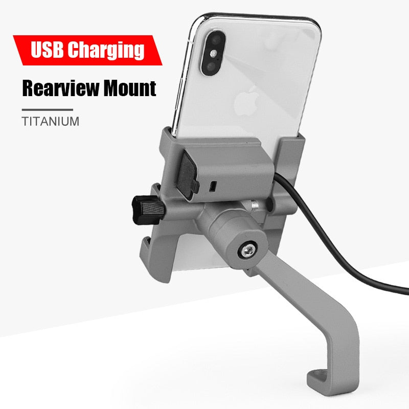 Aluminum USB Charger Moto Bicycle Motorcycle Handlebar Rearview Mirror Phone